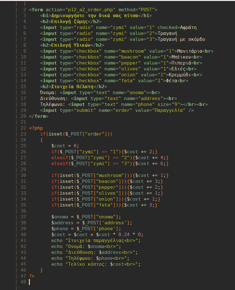 Εφαρμόγη 12 - Άσκηση 2 Παραγγέλια Πίτσας